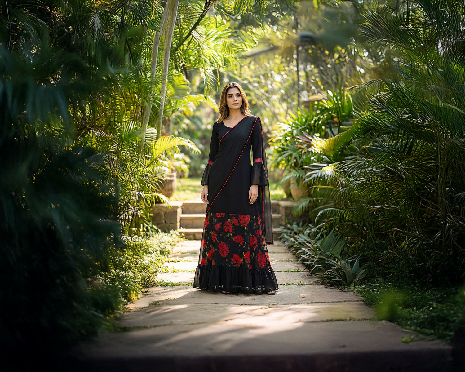 Readymade Saree with crepe satin silk blouse Dhs. 425.00